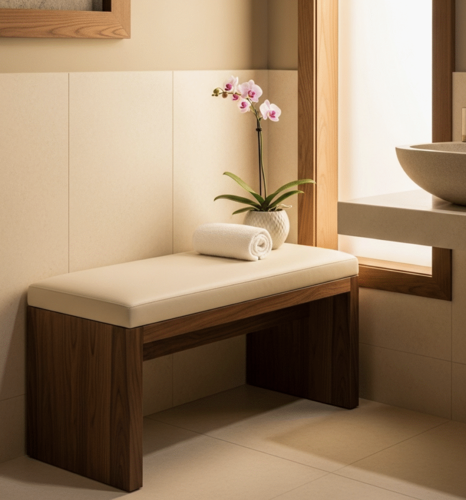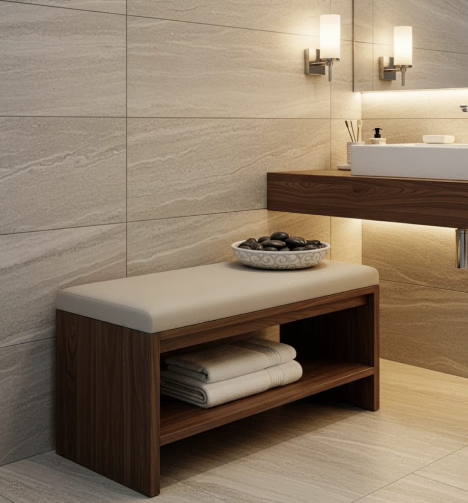 Nuestros bancos pequeños son el complemento ideal para tu baño. Ya sea como apoyo, para vestirse o simplemente como elemento decorativo, los fabricamos con materiales duraderos, resistentes a la humedad y acabados que armonizan con tu espacio.