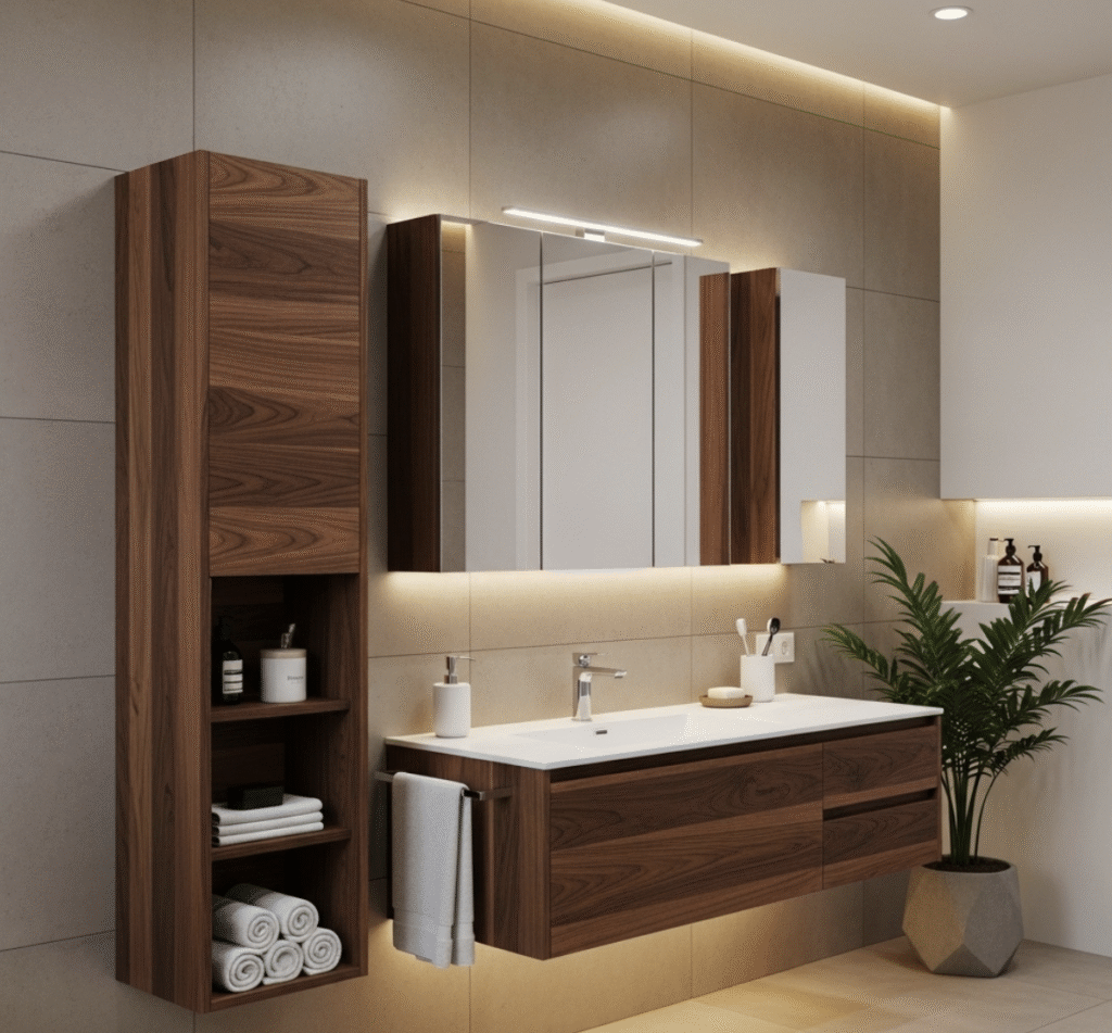 En Osaka Muebles, diseñamos muebles de lavabo que integran almacenaje, resistencia y estilo. Cada vanitorio se fabrica a medida, con acabados resistentes a la humedad y configuraciones que optimizan el espacio sin perder elegancia. Perfectos para baños pequeños o amplios, siempre con un diseño pensado en ti.