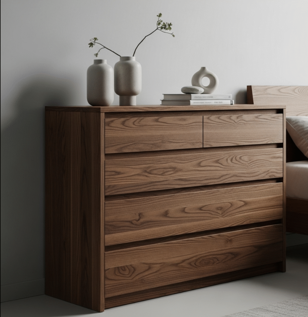 En Osaka Muebles, diseรฑamos cajoneras que combinan funcionalidad, capacidad y estilo. Son ideales para mantener tu ropa, accesorios u objetos personales organizados dentro de la recรกmara. Cada cajonera se fabrica a medida, con acabados, dimensiones y distribuciรณn de cajones personalizados para adaptarse perfectamente a tu espacio.
