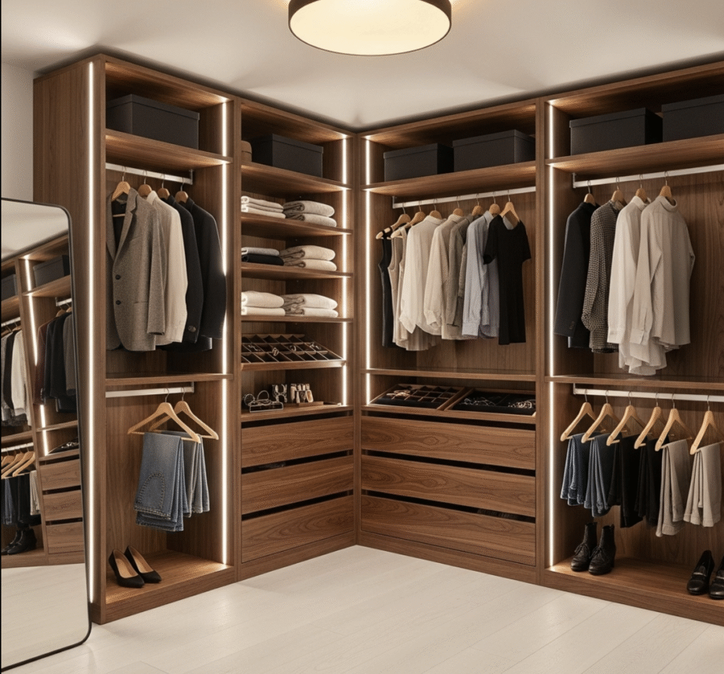 Diseรฑamos clรณsets a medida que aprovechan al mรกximo tu espacio, integrando soluciones prรกcticas como zapateras, cajoneras, barras y repisas. En Osaka Muebles, combinamos funcionalidad, estรฉtica y calidad para que todo tenga su lugar con estilo.
