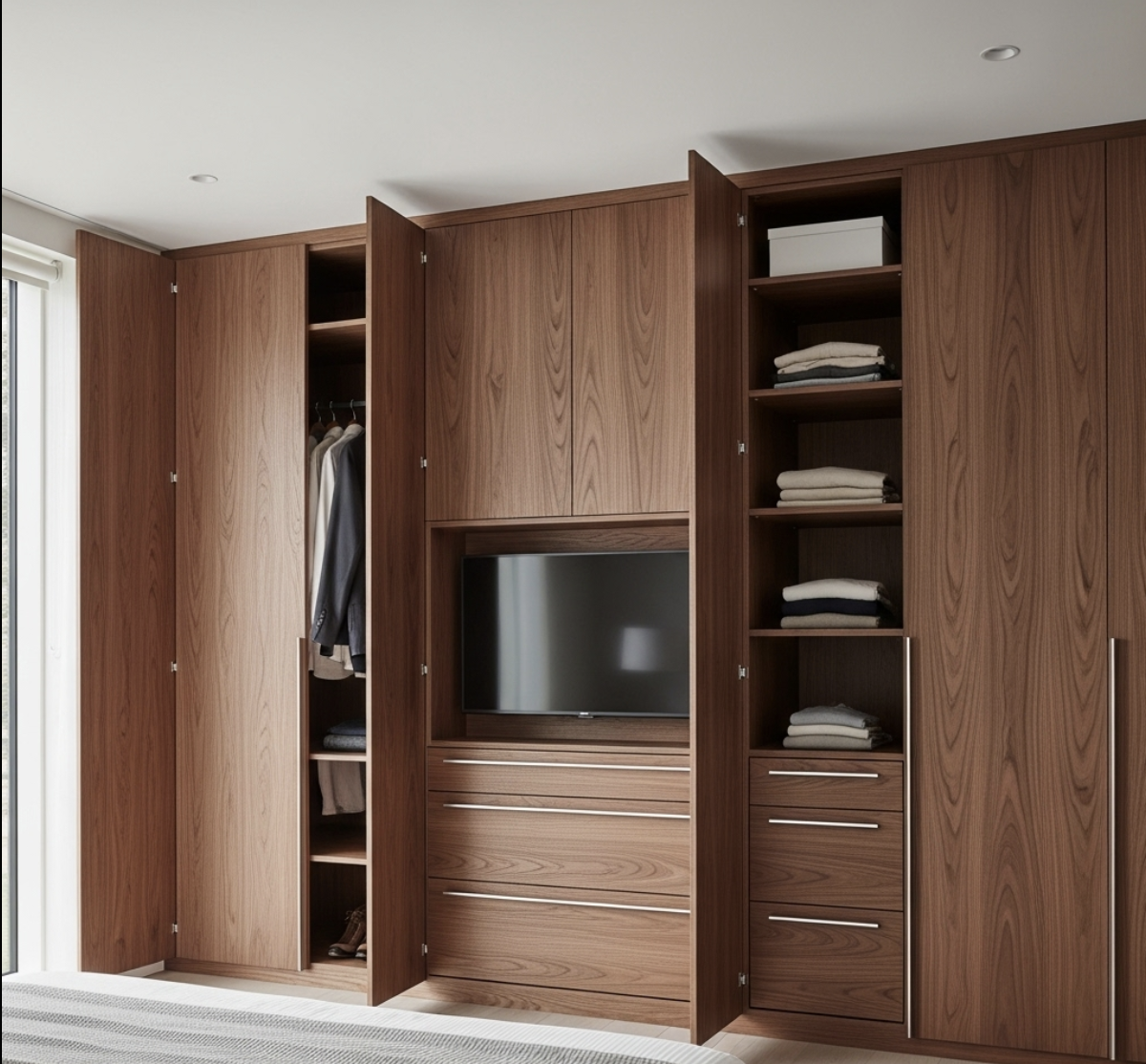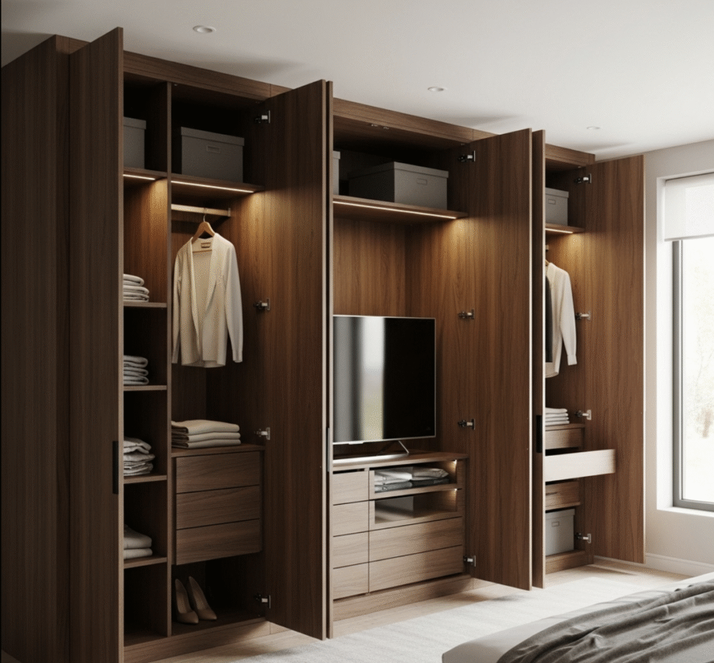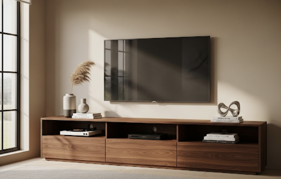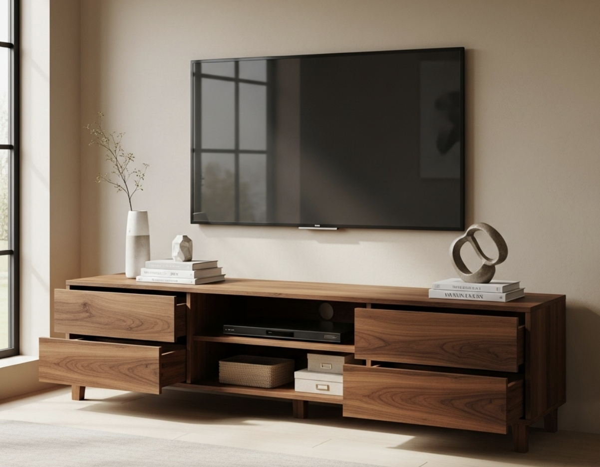 Nuestros muebles para TV en recรกmara estรกn diseรฑados para organizar tu tecnologรญa con estilo. Incorporamos cajones, estantes y espacios abiertos o cerrados segรบn tus necesidades, cuidando que el diseรฑo se mantenga limpio, funcional y armรณnico.