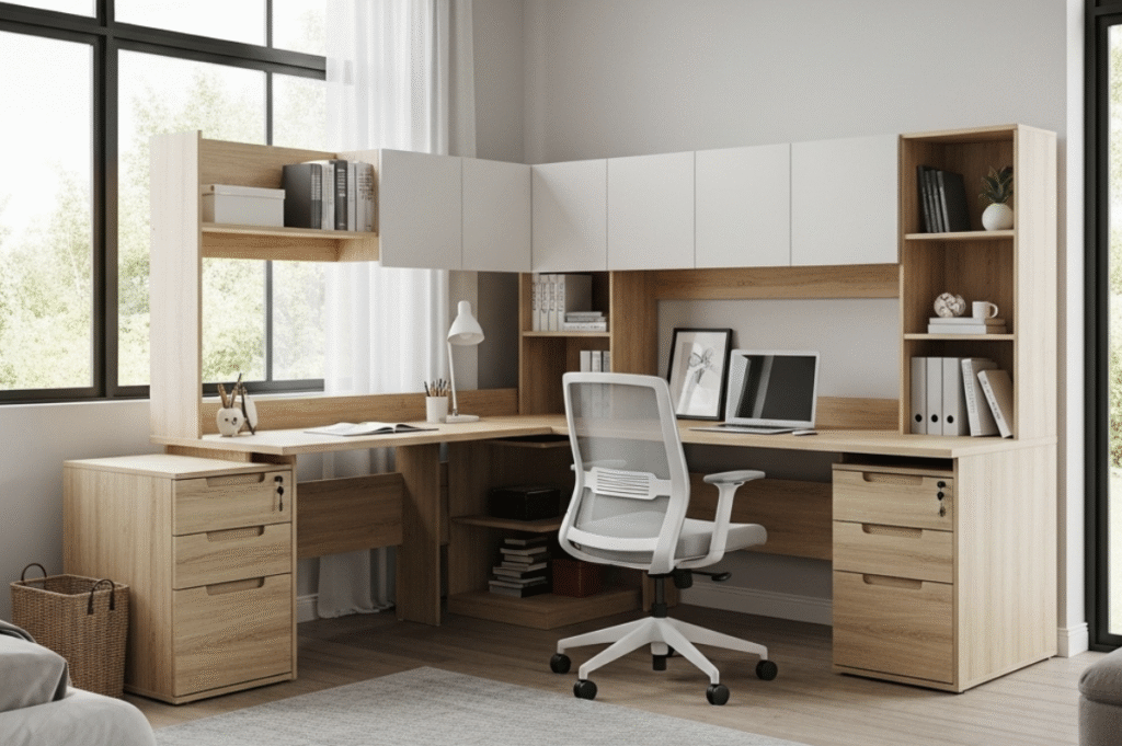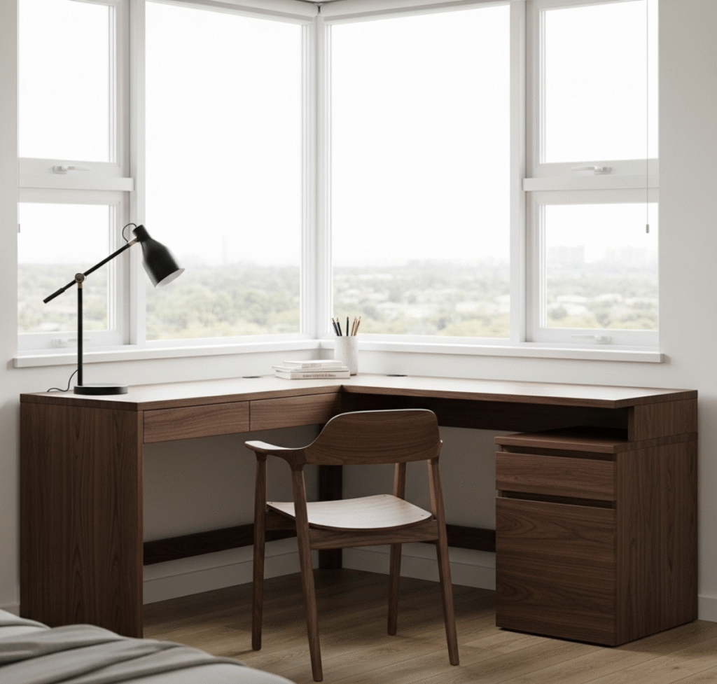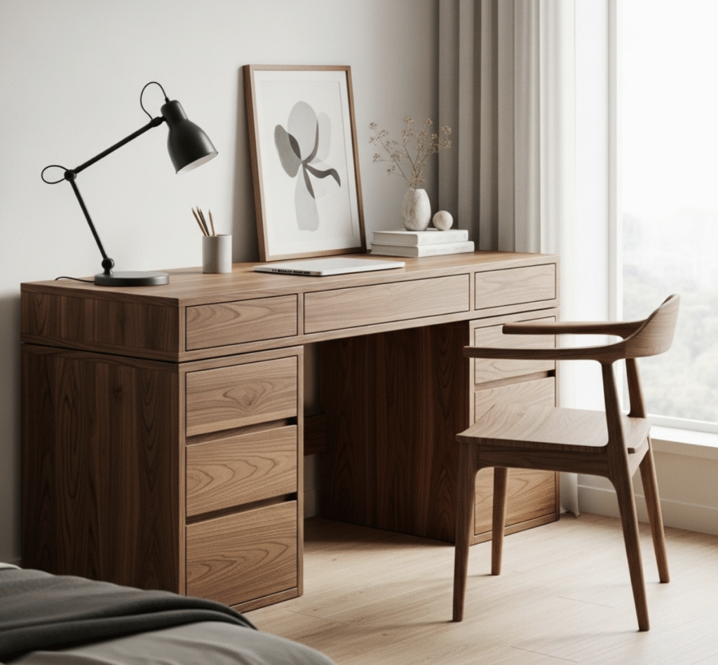 Los escritorios de recรกmara que diseรฑamos en Osaka Muebles estรกn pensados para ofrecer funcionalidad sin sacrificar el estilo del entorno. Compactos, elegantes y personalizados, se adaptan perfectamente a tu ritmo de trabajo o estudio dentro del hogar.