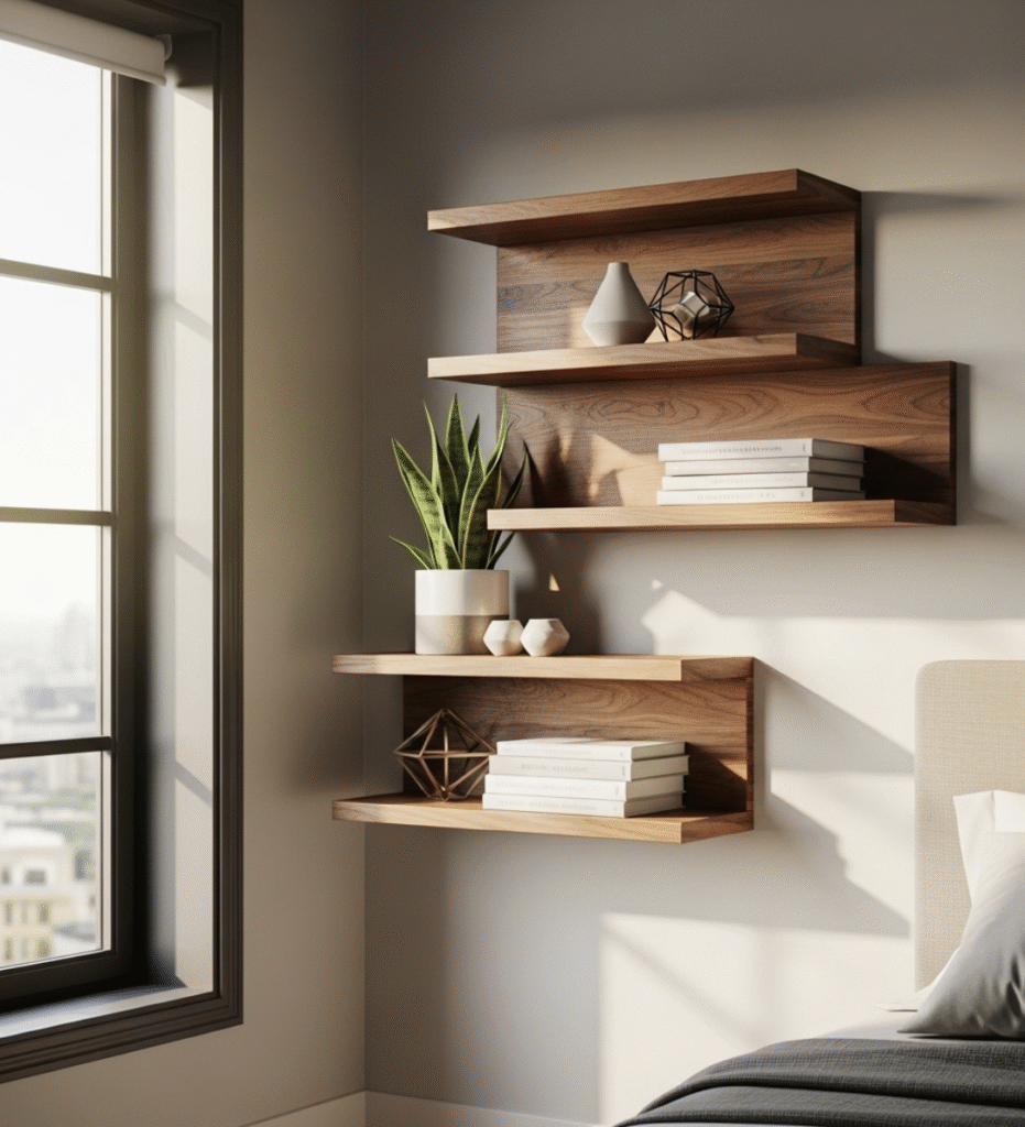 En Osaka Muebles, fabricamos repisas que combinan utilidad y estรฉtica, ideales para exhibir libros, objetos decorativos o artรญculos personales. Las diseรฑamos a medida para adaptarse a la distribuciรณn y estilo de tu recรกmara.