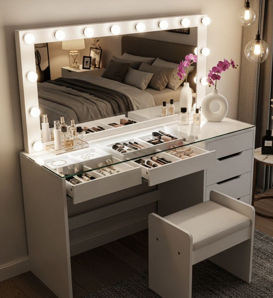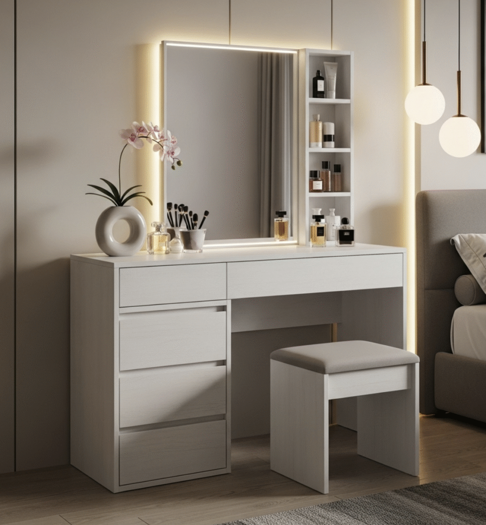 Nuestro vanity estรก pensado para ser tu espacio de cuidado personal. En Osaka Muebles, lo diseรฑamos con compartimentos funcionales, iluminaciรณn opcional y un diseรฑo estรฉtico que resalta dentro de tu recรกmara, haciรฉndolo prรกctico y visualmente atractivo.