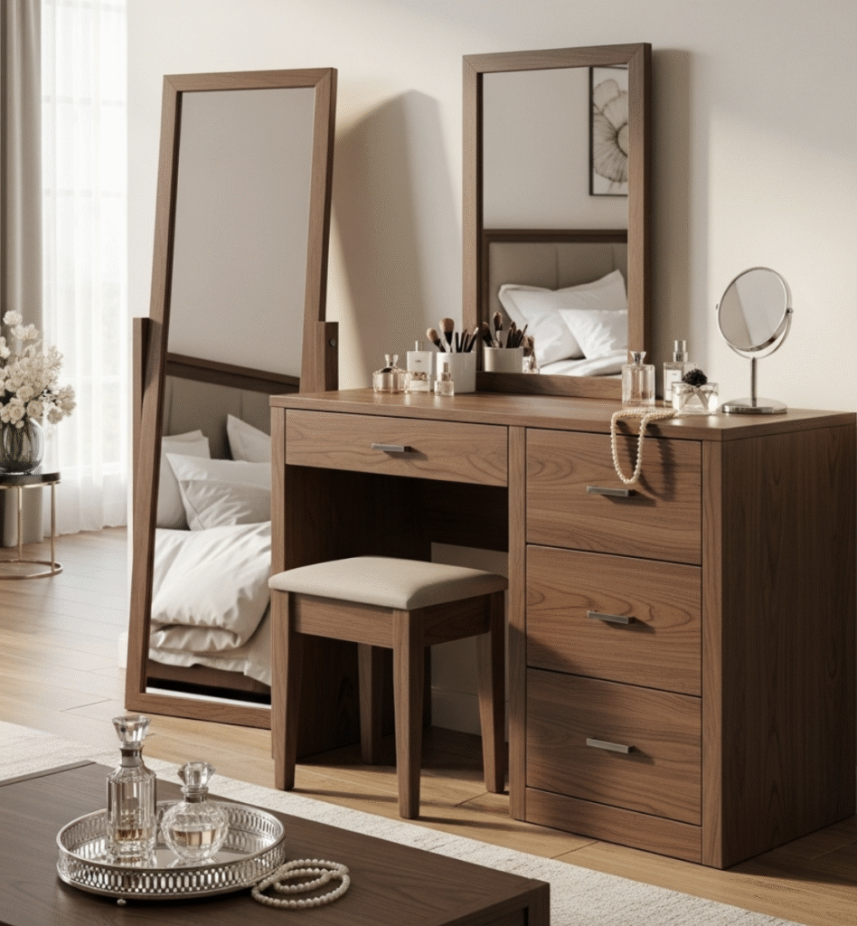 Diseรฑamos tocadores que combinan belleza y practicidad, ideales para tus rutinas diarias. En Osaka Muebles, cada tocador es รบnico, con cajones organizadores, espejos elegantes y acabados que armonizan con tu recรกmara y estilo de vida.