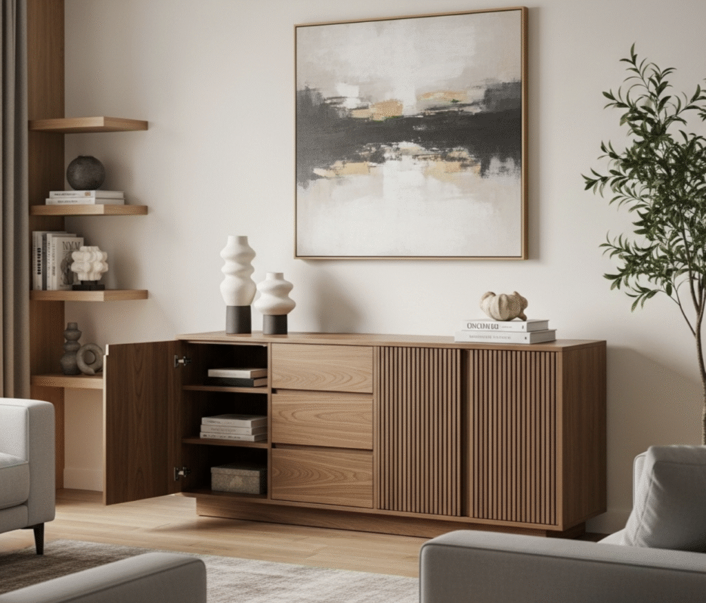 En Osaka muebles, diseรฑamos cajoneras personalizadas que combinan funcionalidad y estilo, perfectas para organizar todo lo que necesitas en tu sala. Ya sea para guardar controles remotos, documentos u otros accesorios, nuestras cajoneras se fabrican a medida, asegurando que encajen perfectamente en tu espacio y complementen la decoraciรณn de tu hogar.
